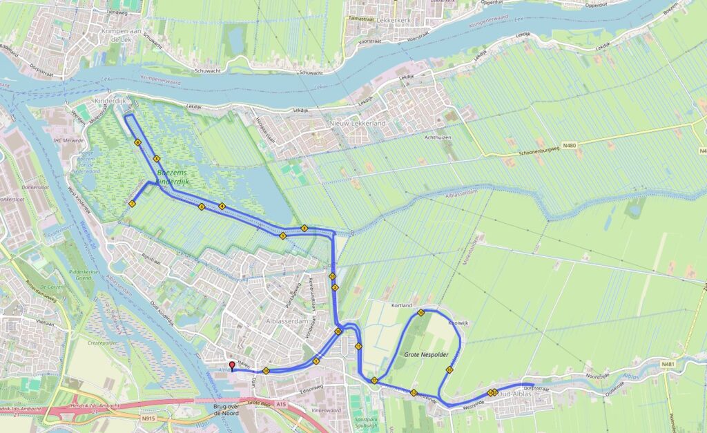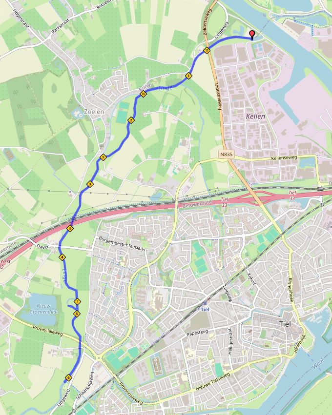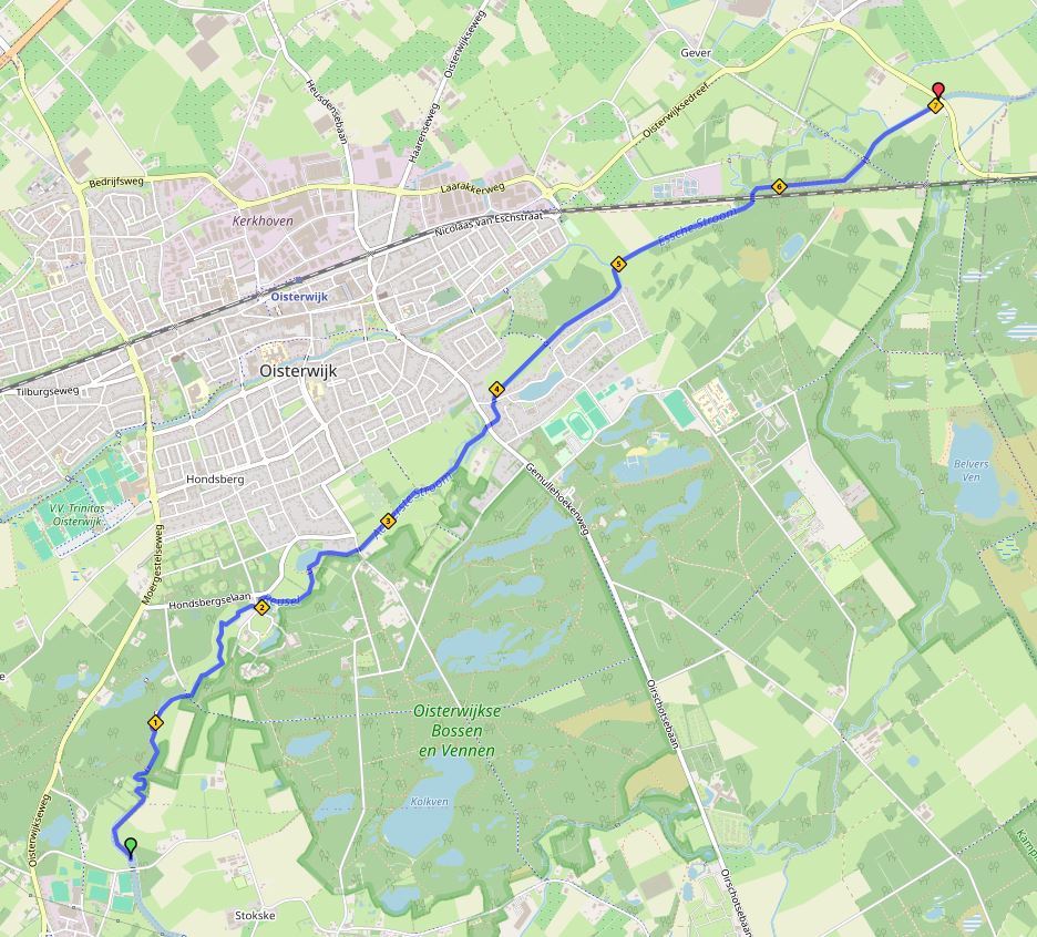 Begin- en eindpunt: verhuur M2UE langs Beuningsedijk, Berlicum