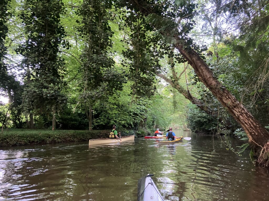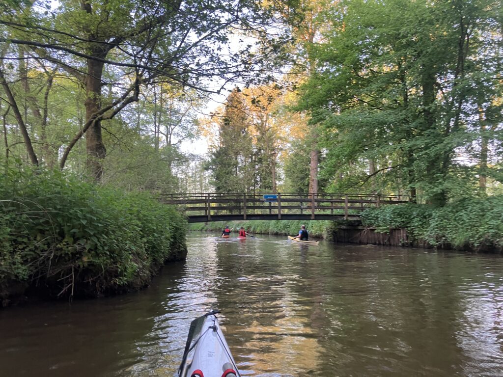 Extra overdragen vanwege de hoge waterstand dit keer, maar een plekje daarvoor zoeken heeft dan weer wat avontuurlijks! Stroomafwaarts (enkeltje) gevaren, dus geen grote inspanningen en goede oefening wat stroming en sturen betreft.