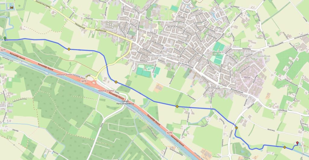 Start bovenstrooms van stuw bij Heeswijk, tot op molenvijver Kildonkse molen.