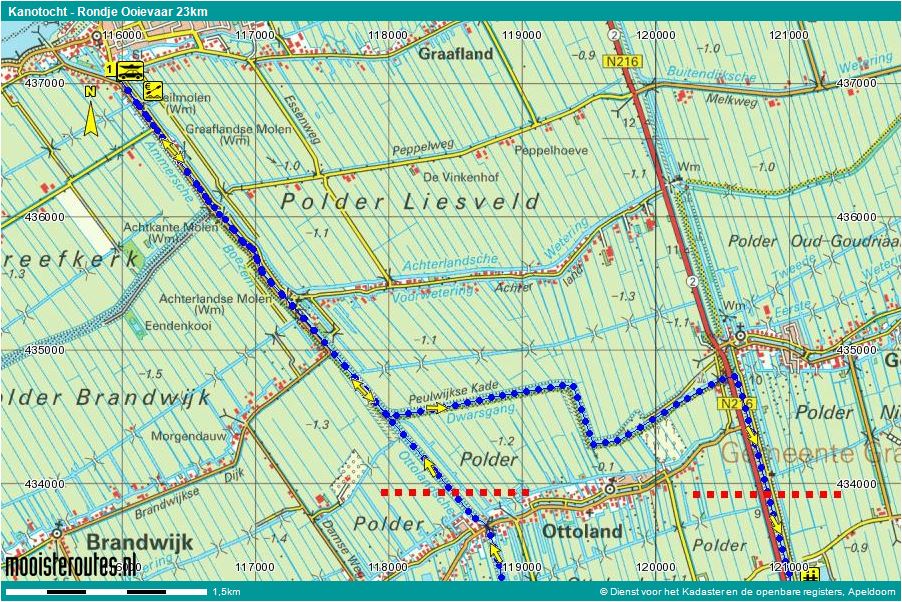 3 Na de brug kiest u de eerste vaart aan stuurboord. Na een uurtje varen passeert u de ophaalbrug van Ottoland. Tien minuten later komt u op bekend water. Het laatste half uur vaart u hierop, maar het is geen straf dit mooie traject langs de molens in omgekeerde volgorde te varen. Zo peddelt u naar het eindpunt van deze kanotocht van De Mooiste Routes.