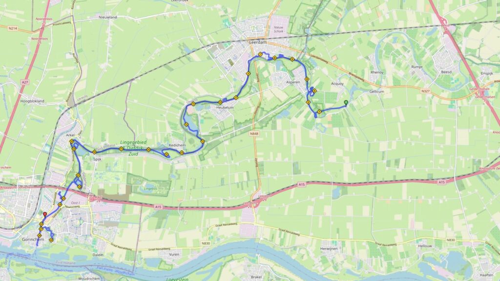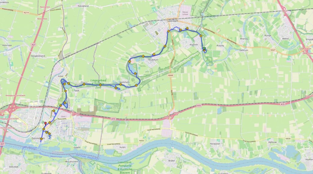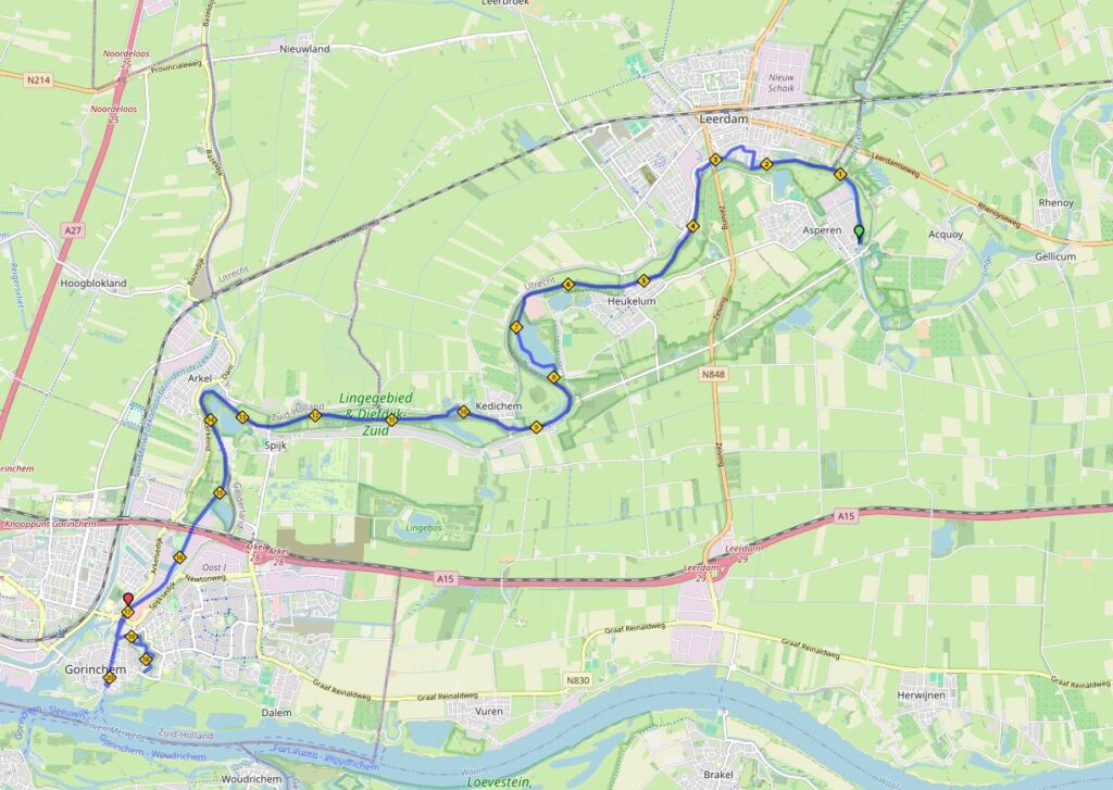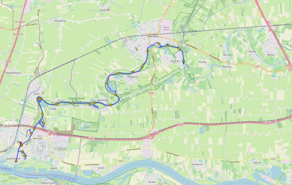 Nieuw route idee uit toervergadering Linge tocht naar Gorinchem of Woudrichem. Acquoy, Asperen, Leerdam, Heukelum, Kedichem, Spijk, Arkel, Gorinchem, (Boven-Merwede, Woudrichem).